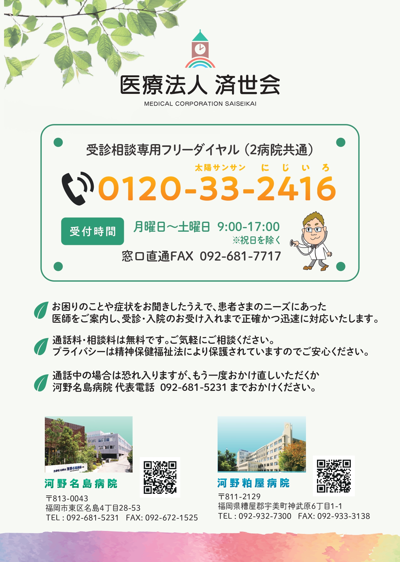 令和8年1月5日より、受診・入院相談窓口の受付時間が下記のとおり変更となります。