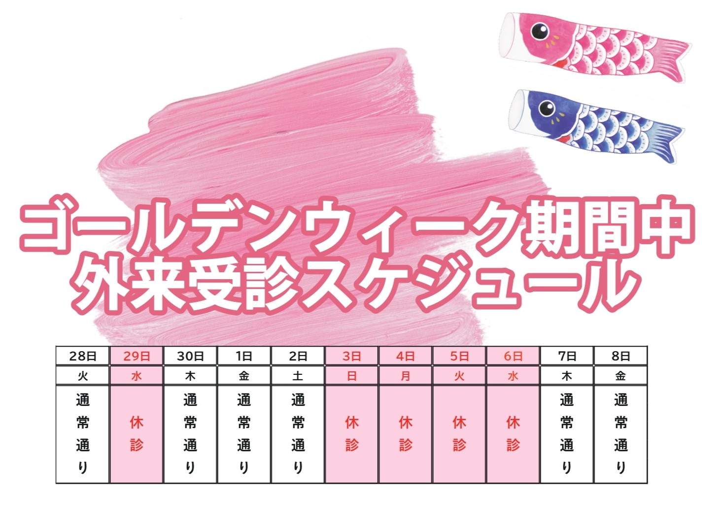 ゴールデンウィーク期間中の外来受診についてお知らせいたします。